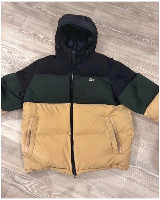 This is a Lacoste Men's Multi Puffer Jacket in navy, with a hood for added warmth. It is a regular fit in size M, designed for men. The jacket features a stylish puffer design, perfect for keeping you warm during colder weather. The cream and green colour accents add a touch of style to the overall look of the jacket. Ideal for everyday wear, this jacket is a versatile addition to any man's wardrobe.