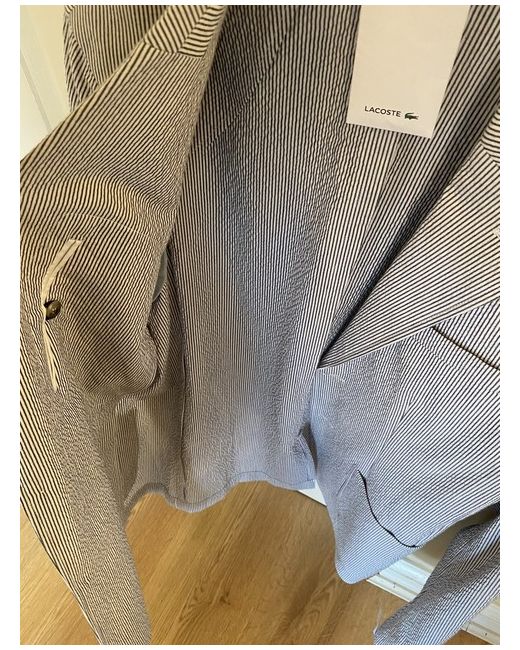 Mens Lacoste Blazer/Jacket. Grey/White stripe with button fastening. Pockets inside and outside. Size medium slim fit. Condition is "New with tags".