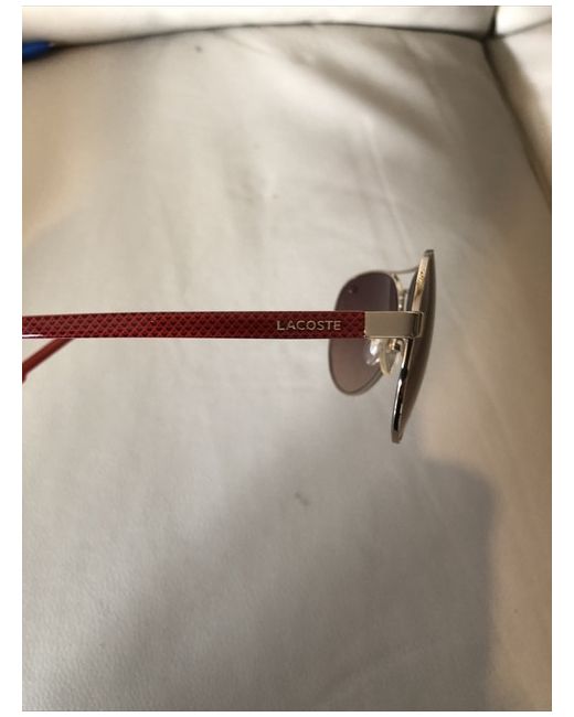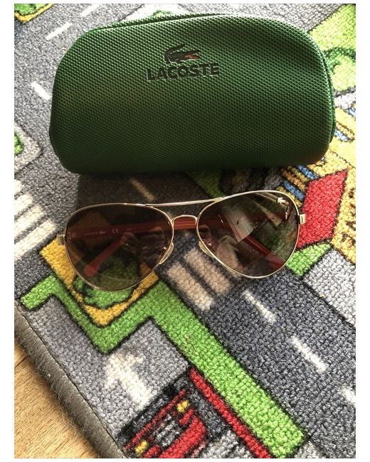 Lacoste sunglasses. L163S 718 brand new with the box with out tag never worn with out lenses Are classics cool aviator shaped with a metal front and textured rubberised temples featuring the brand test logo the famous crocodile logo is etched into one lens and adjustable nose pad guarantee comfortable fit Size 62-13-140