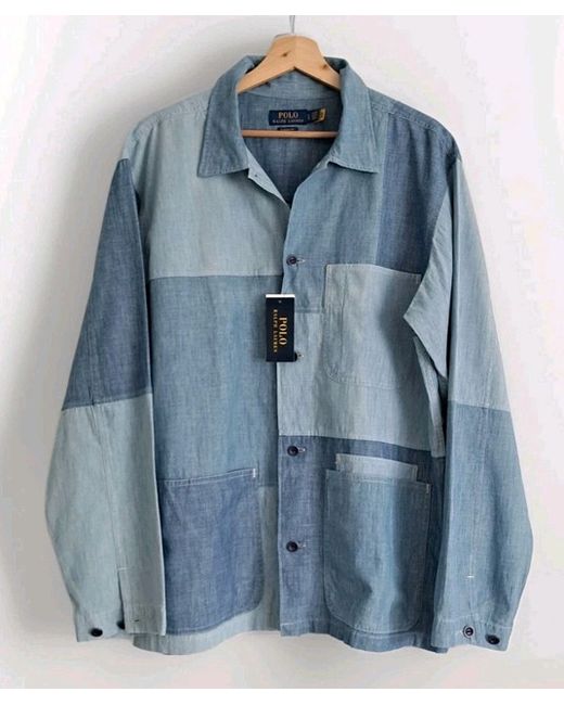 POLO RALPH LAUREN PATCHWORK SHIRT OVERSHIRT CHAMBRAY BLUE. SIZE LARGE PLEASE CHECK THE MEASUREMENTS BEFORE BUYING TO AVOID DISAPPOINTMENT. ARMPIT TO ARMPIT LAYING FLAT 25" LENGTH 29" SLEEVES LENGTH SHOULDER POINT TO CUFF END 25.5" 100% Cotton