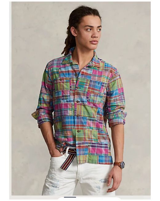This cotton shirt is made with authentic Indian madras and features a pattern inspired by designs traditional to Uzbekistan and cultures throughout Central Asia. Ralph Lauren partners with Better Cottonâ„¢ to improve cotton farming globally.