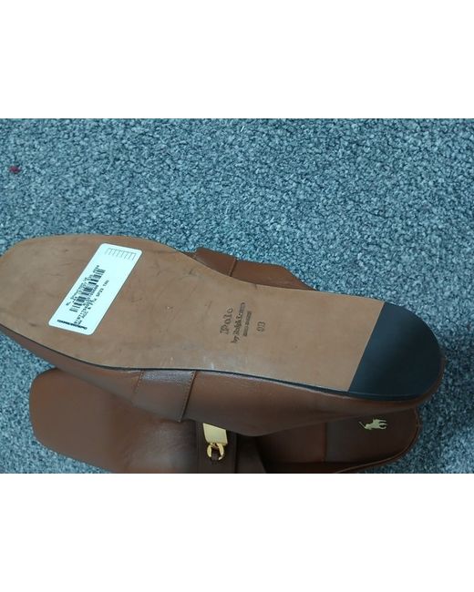 These Polo Ralph Lauren men's slippers are size 8.5 UK, 9 US, with a slip-on style and brown leather upper and outsole material. They are new without a box.