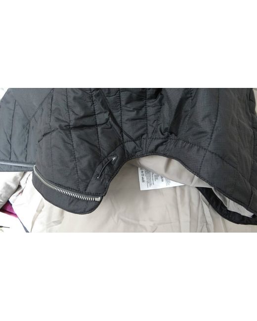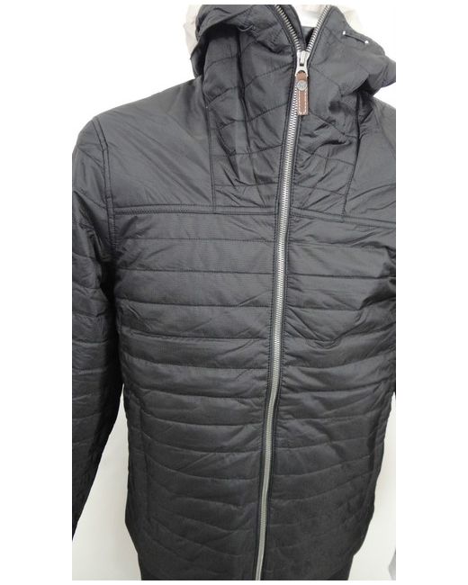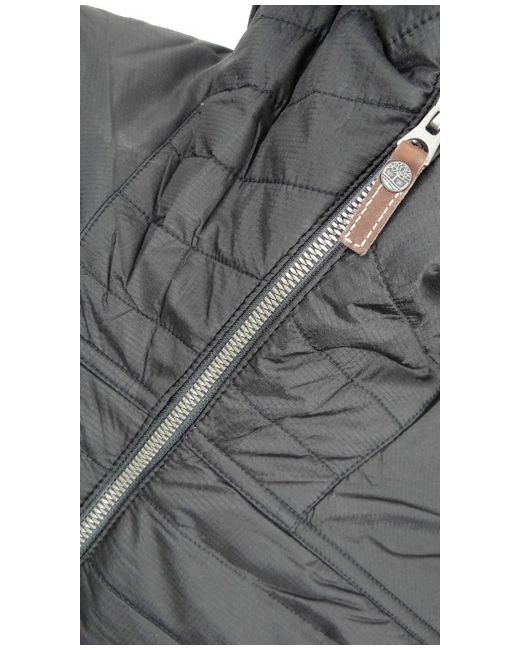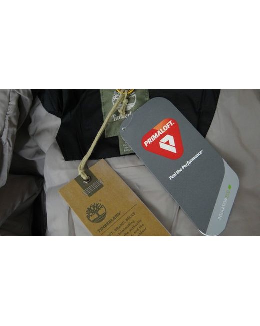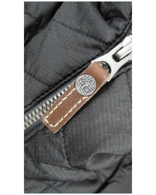 'PRIMALOFT'. Primaloft lining for warmth without weight. 'Primaloft' jackets Timberland black quilted jacket. WATER RESISTANT. Hooded with funnel neck. Base of collar to Hem: 28". Underarm to Underarm: 22".
