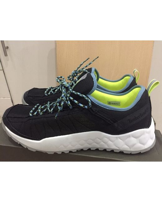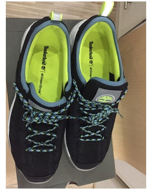 Size 11 Uk Timberland Greenslide Mens Trainers. It’s new with a box. It is 75% made of renewable sugar cane and rubber from trees. It’s in colours of black, white, grey and lime green.