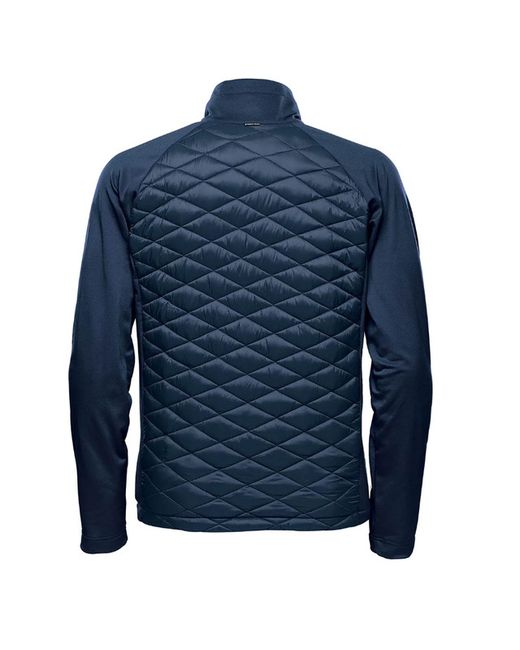 Full length zip with chin guard and inner zip guard. 97% polyester/3% spandex sleeves and side body panels. Material: Nylon quilted front and back panels. Two front zip pockets. High loft synthetic thermal insulation.