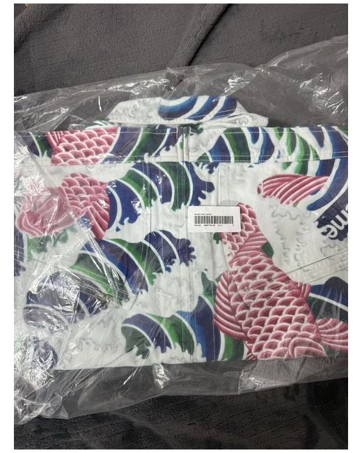 Elevate your style with this Supreme Waves Jacket, a must-have for any fashion-forward man. This multicoloured denim jacket is made with high-quality cotton and comes in size medium, perfect for regular size types. With its unique design and vibrant colours, it is sure to make a statement wherever you go. The Supreme brand is known for its superior quality, and this jacket is no exception. It is perfect for a range of occasions, from casual outings to formal events. Add this jacket to your wardrobe today and step up your fashion game.