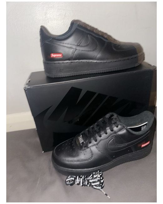 Hello selling Nike air force 1 low Supreme Size: 6 Colour: White & Black Condition: Brand new/ W Box 100% Authentic New season Sc: Tees_wardrobe IG: Teesclosetuk