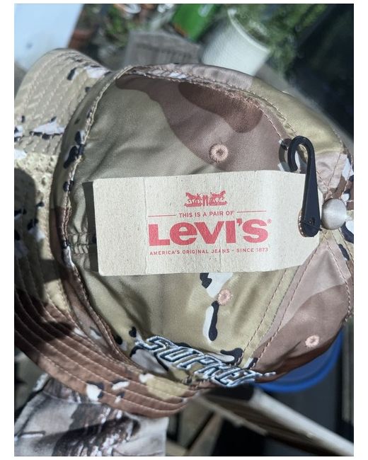 Elevate your streetwear game with this stylish Levi's X Supreme Bucket Hat. Designed for men, this hat features a multicoloured pattern that is sure to turn heads. Its M/L size is perfect for a comfortable fit, while the bucket hat style adds a touch of versatility to any outfit. Bought on the supreme website a few years back just never wore it or even took the tags off Feel free to message me :)