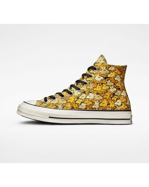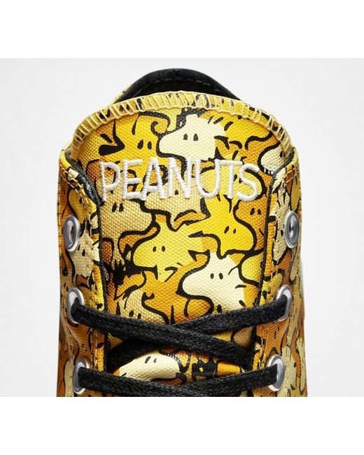 Converse x Peanuts Chuck 70 Shoes. Converse x Peanuts logo lockup on sockliner. Embroidered Peanuts logo on tongue. Limited-edition high-top sneaker with a 12oz organic canvas upper.