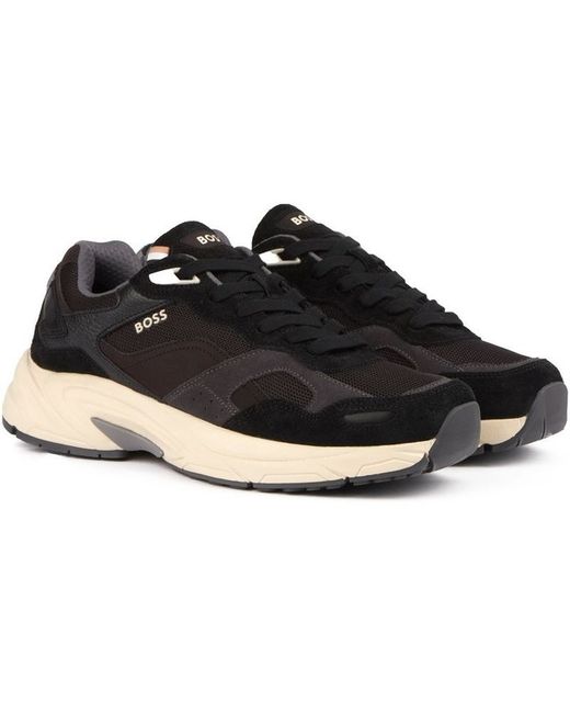 Take on the road in the BOSS Levitt lace-up trainers, featuring a premium mixed material upper with eye-catching detailing and BOSS signature branding. These contemporary running-style sneakers have tonal details and a sleek, outdoorsy design. A padded insole, cushioned ankle collar, Ortholite footbed and a thick outsole offer extra comfort and grip. Whether you want to make a designer-fashion statement, run some errands or make a mark at the park run, these are your go-to runners.