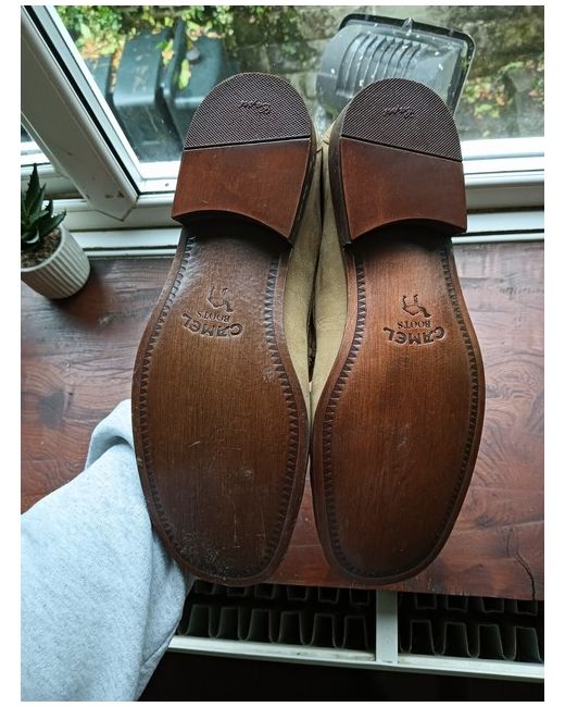 Elevate your formal shoe collection with these stylish men's leather camel loafers in size 10. These slip-on loafers are perfect for any occasion, whether it's a business meeting or a night out with friends. Wouldn't recommend wearing in wet weather though! As it will ruin the leather. If you do end up getting caught in a drizzle, air dry them (don't force dry them by a heat source as it will damage the leather and force them to crack.) feed the leather with a good wax.
