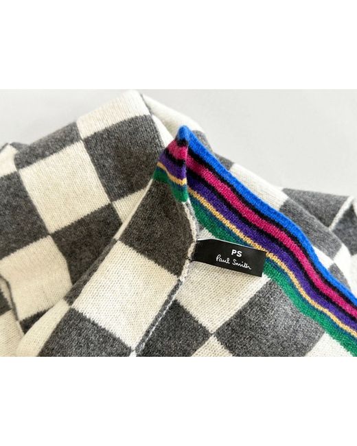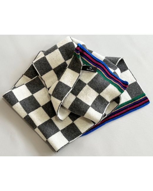 Men's Double Layered Checked Pattern 100 Soft Wool Scarf Bnwt Rare
