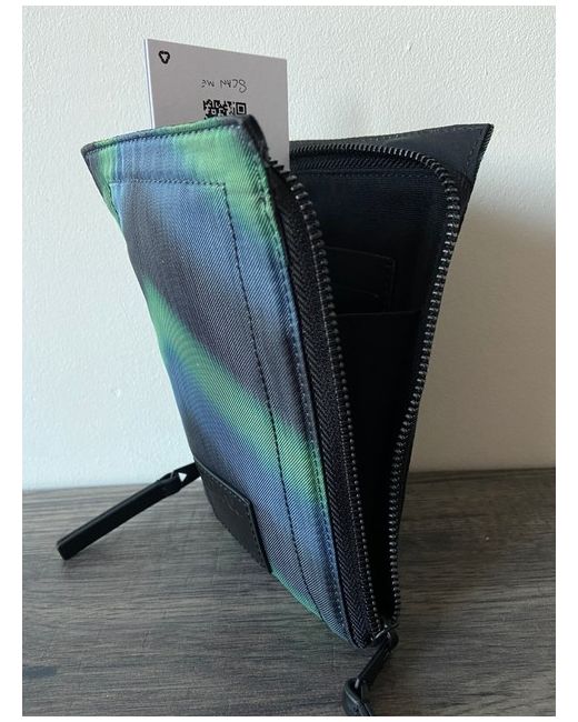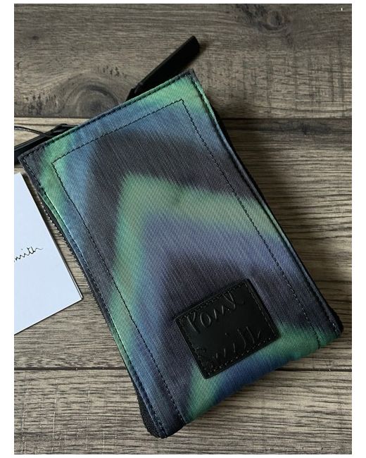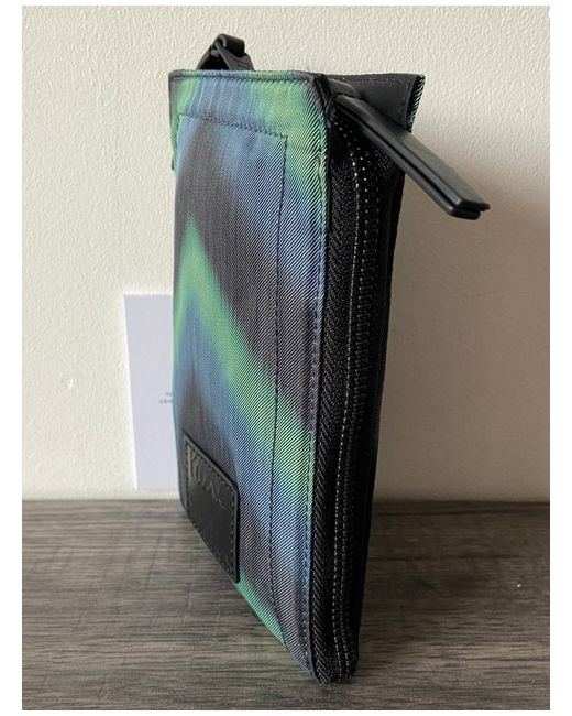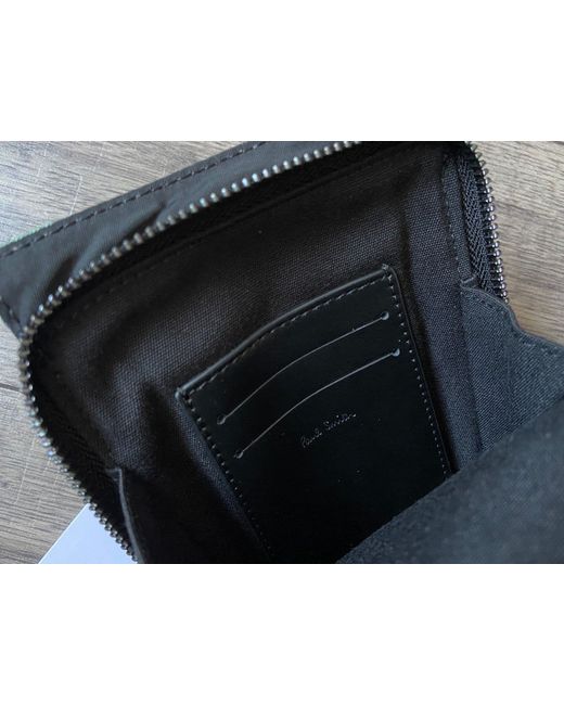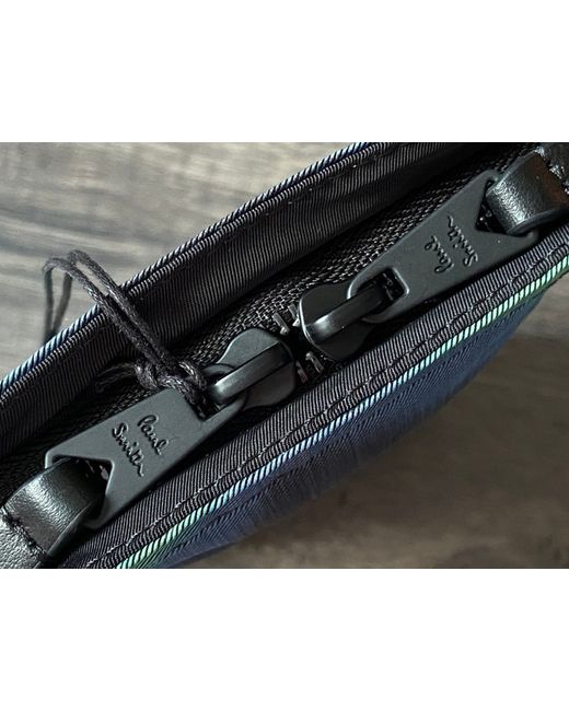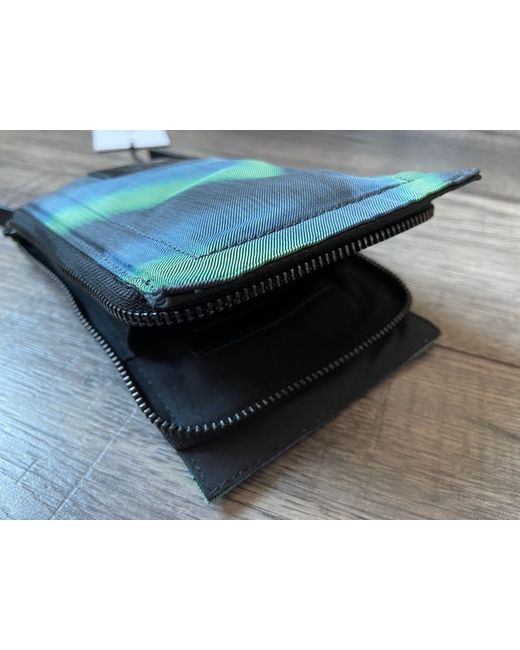Blurred Zigzag Design In Shades Of Green, Blue And Black With Black Hardware. Inside Is Lined In A Black Twill Fabric And Includes A Leather Cardholder Storage Panel With Paul Smith Signature. Premium Quality Neck Pouch/Crossbody Bag From Paul Smith.