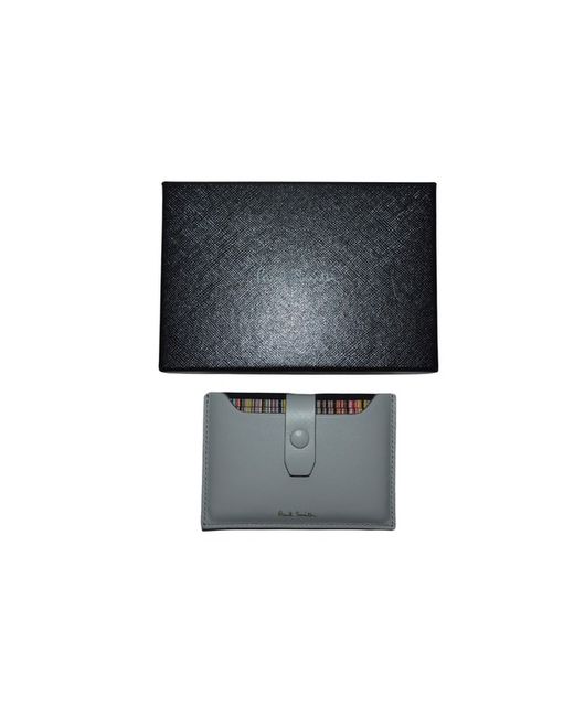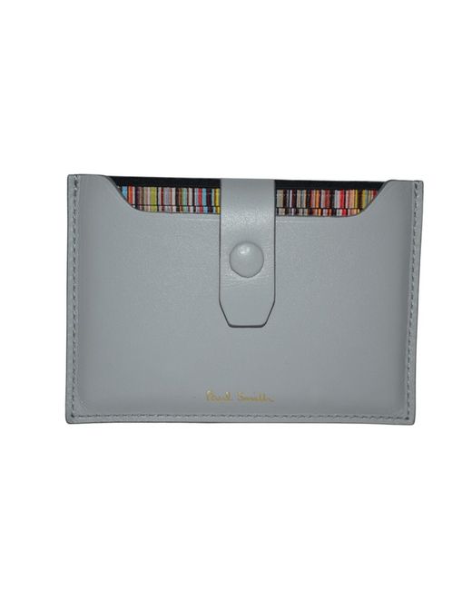Crafted in Italy from premium grey calf leather this card walletfeatures a fold over popper secured strap and gold foil embossed Paul Smith logo. 100% Calf Leather. Paul Smith. Pull Our Multi Stripe Model.