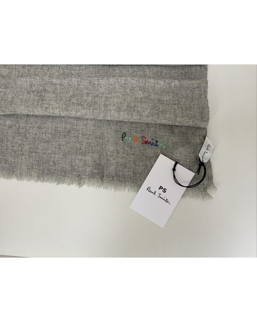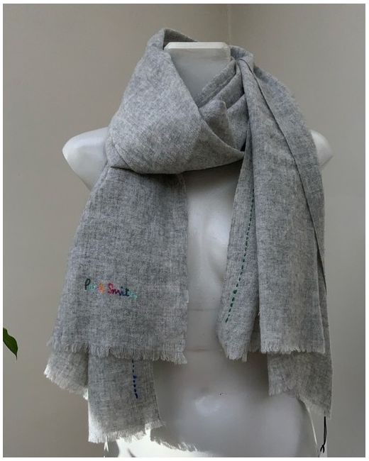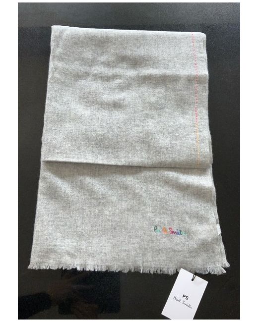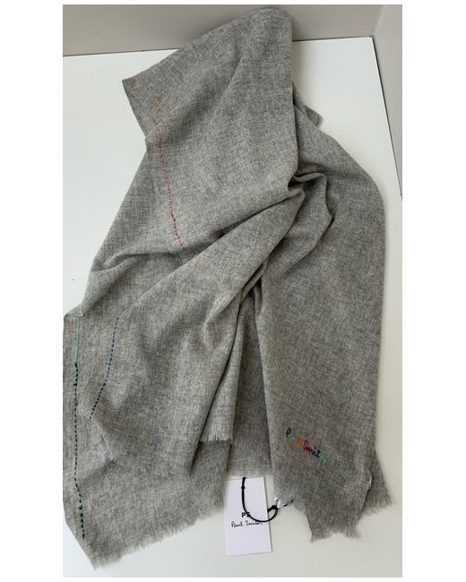 Made from 70% Wool and 30% Nylon it gives the fabric a soft feel with the warmth you would expect. At one end there is the synonymous multicoloured Paul Smith signature embroidered. This is a smart Light Grey Wool Blend Scarf by British Designer, Paul Smith.