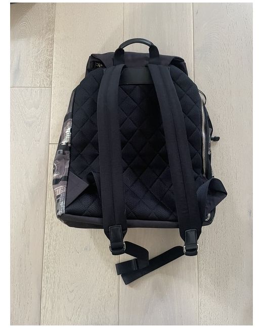 Made from a lightweight polyester, this sports-style backpack features a tonal camera pattern throughout. Complete with flap closure and clip fastenings Adjustable straps Zip pocket on inside flap Side draw-cord pockets Large main compartment for laptop Pet and smoke free home PLEASE LOOK AT MY OTHER ITEMS