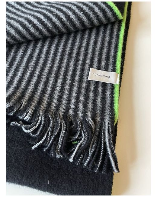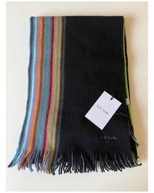 PAUL SMITH MEN’S 100% WOOL KNITTED MULTICOLOURED SIGNATURE STRIPE REVERSIBLE SCARF NWT A brand new Paul Smith men’s knitted wool scarf which has not been worn and still has its tag attached. Crafted in Germany from 100% wool, this black woven scarf features a colourful Signature Stripe on both sides, a grey/black stripe on the reverse and finished with frayed ends. Reversible design • Multicoloured stripes to both sides • Tasselled ends • 100% Wool • Dimensions: L:180cm x W:26cm • Made in Germany