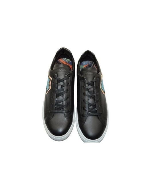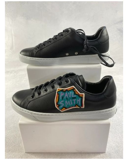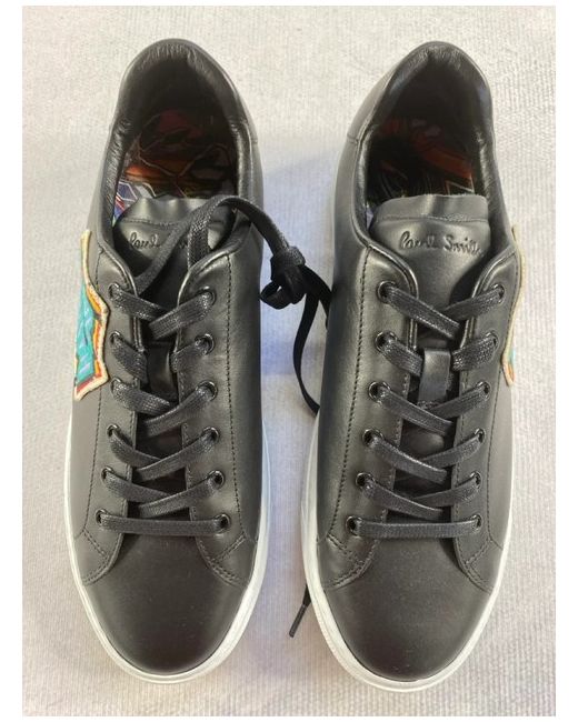 Paul Smith Trainers. Hansen Pattern. PAUL SMITH. Black padded signature embossed leather tongue, and and heel panel. Length - Outer sole heel to toe-30.6cm. 100% Leather Uppers- 100% Rubber Soles. UK 9, US 10, EU 43.
