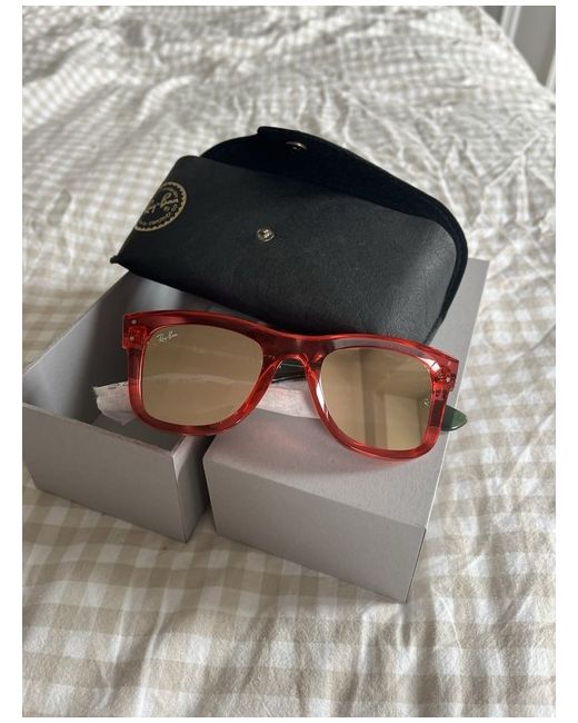 The Ray-Ban Sunglasses Wayfarer Reverse Red are a stylish and iconic accessory suitable for both men and women. Made in Italy, these sunglasses feature mirrored lenses with UV400 protection, ensuring your eyes are shielded from harmful rays. The red frame adds a bold and trendy touch to the classic Ray-Ban design, making them a popular choice for fashion-forward individuals looking for both style and functionality. Perfect for adding a pop of colour to any outfit, these sunglasses are a must-have for those seeking a chic and practical eyewear option. Unwanted gift, never worn