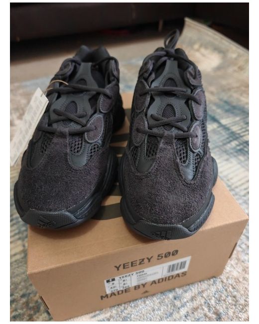 Step into comfort and style with the adidas Yeezy 500 in a sleek black colourway, a perfect addition to any modern man's wardrobe. The Yeezy 500 series is known for its distinctive and popular silhouette, offering a unique blend of minimalist design and signature branding. Crafted for those who appreciate the finer details, these trainers feature a versatile utility black hue that complements a variety of outfits, making them a staple for both casual and smart-casual occasions. The UK size 8.5 (US size 9) ensures a comfortable fit for those with discerning taste and a penchant for premium footwear.