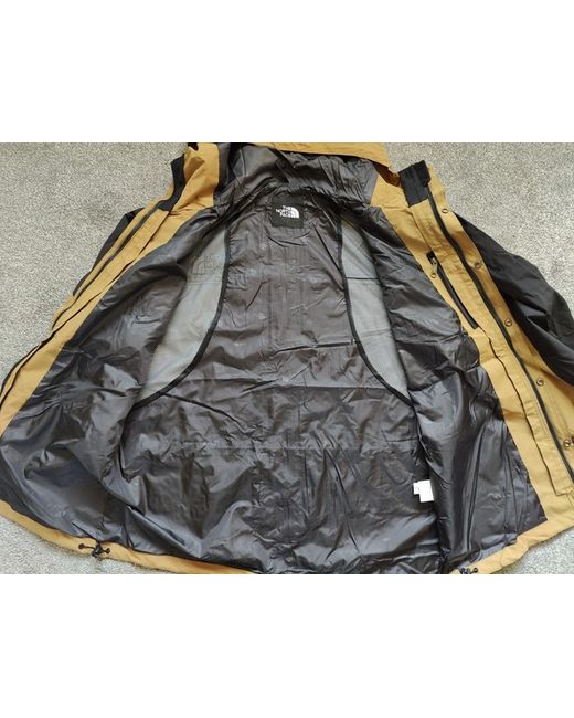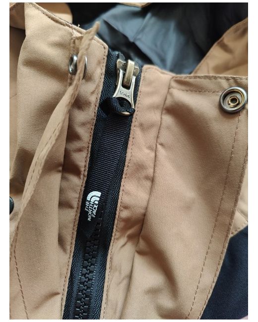 Made with Gore-Tex fabric, this tan & black parka features a full zip, drawstring closure, and a hood to keep you warm and dry during winter walks, skiing, or hiking. The jacket is insulated with polyester and lined with nylon, while the outer shell is made of nylon Gore-Tex.