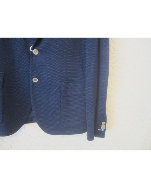 Composition:100% Cotton. Navy blazer with speckles detail. Jersey fabric. length taken from the seam of neck line to the bottom of the jacket is 28"(71.2 cm). Body is unlined. Sleeves are fully lined with 100% Viscose.