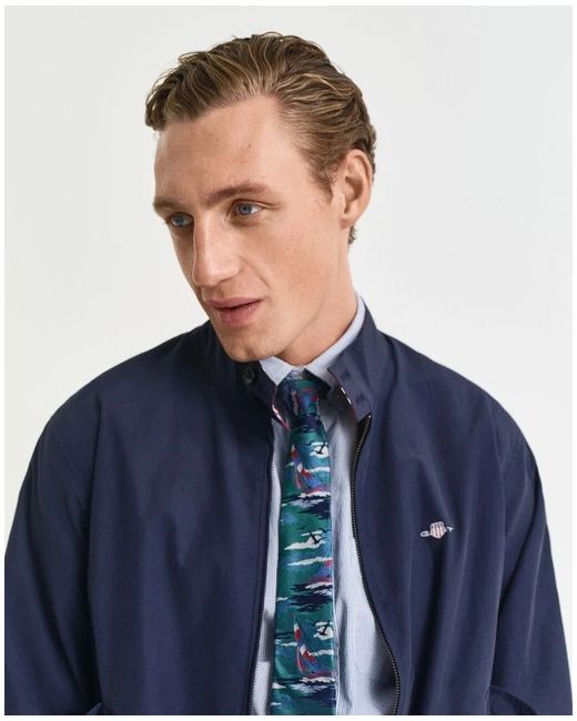 Crafted by renowned brand GANT, this Reversible Harrington Jacket is a versatile addition to any man's wardrobe. The piece is designed in a regular fit, ensuring comfort without compromising on style. Its classic bomber jacket silhouette is complemented by a cotton outer shell in an elegant blue hue, making it an ideal choice for a range of occasions. The jacket's reversible feature allows for two distinct looks in one garment. It also boasts practical accents such as a zip, enhancing its functionality and making it a suitable option for those cooler days. This garment is not just a piece of clothing; it's a testament to timeless design and practicality.