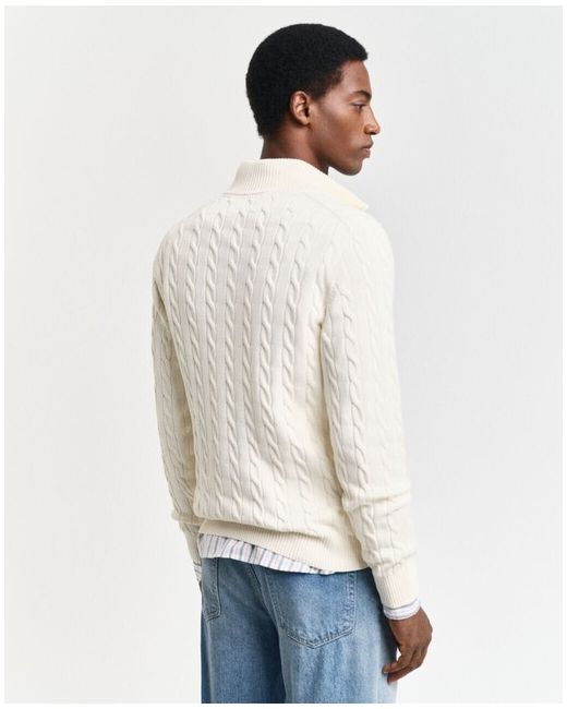 Crafted with the timeless elegance that GANT is renowned for, this cotton cable jumper is a testament to classic style and comfort. The pullover design, accented with a practical half-zip feature, offers both warmth and ease of wear. Its cream hue makes it a versatile addition to any wardrobe, effortlessly complementing a range of outfits for various occasions. Attention to detail is evident in the garment's construction with its traditional cable pattern, ensuring both durability and a touch of sophistication. Designed for the modern man, this jumper is a perfect blend of functionality and style, making it an essential piece for those who appreciate quality and understated design.
