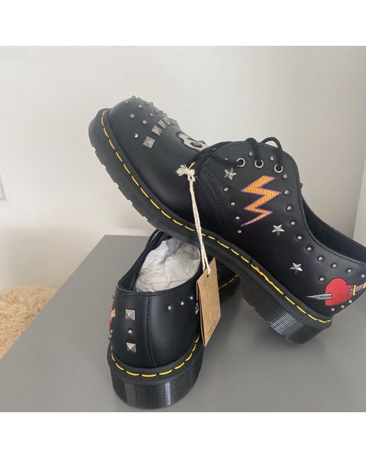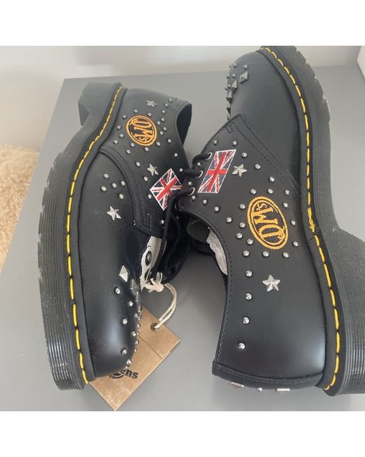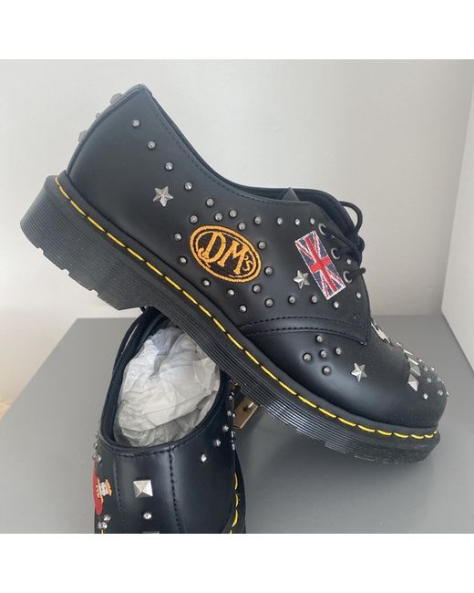 men’s dr martens air wave with bouncing soles size uk 9 lovely shoe black leather lovely skull design and great britain flag design.