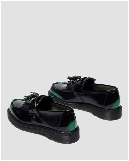 Men's Green Adrian Tassel Arcadia Rub Off Leather Premium Loafers Black/