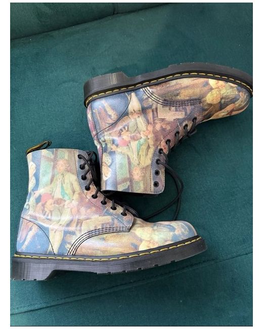 The boots feature a round toe shape, lace-up closure, and ankle shaft style. They are made of leather with a slip-resistant outsole, cushioned insole, and adjustable features for maximum comfort. Ideal for various occasions such as travel, activewear, parties, casual or workwear, these boots are customized with a unique ART Hogarth Renaissance Museum Collaboration Pascal pattern, with accents of lace, eyelet, and logo.