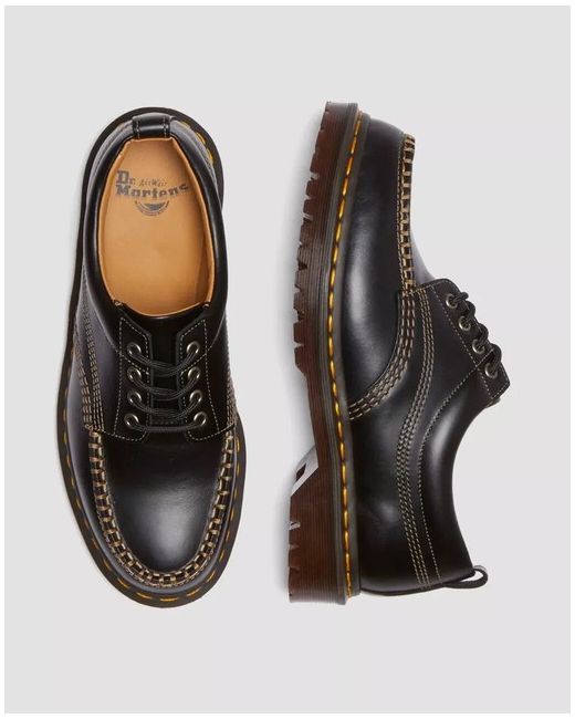 Dr. Martens Lowell Leather Moc Toe Shoes in Black and Brown The Lowell blends contemporary aesthetics with archival workwear designs. A 4-eye shoe constructed from black Analine leather with a comfort-focused padded collar.