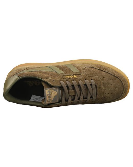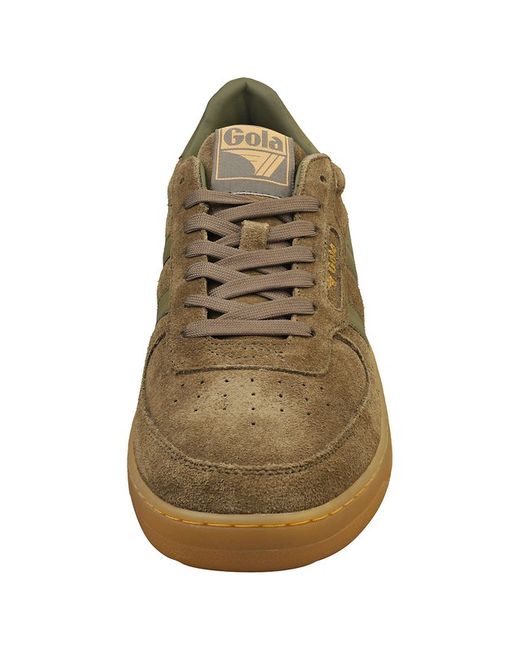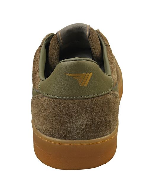 These Gola HAWK 86 trainers in khaki exude classic casual cool. Crafted from premium suede, they offer a durable and stylish finish. The textile and synthetic linings provide comfort with every step, while the textile insoles add cushioning. A sturdy rubber sole ensures grip and durability, making these trainers perfect for everyday wear. The lace-up fastening allows for a secure and personalized fit.
