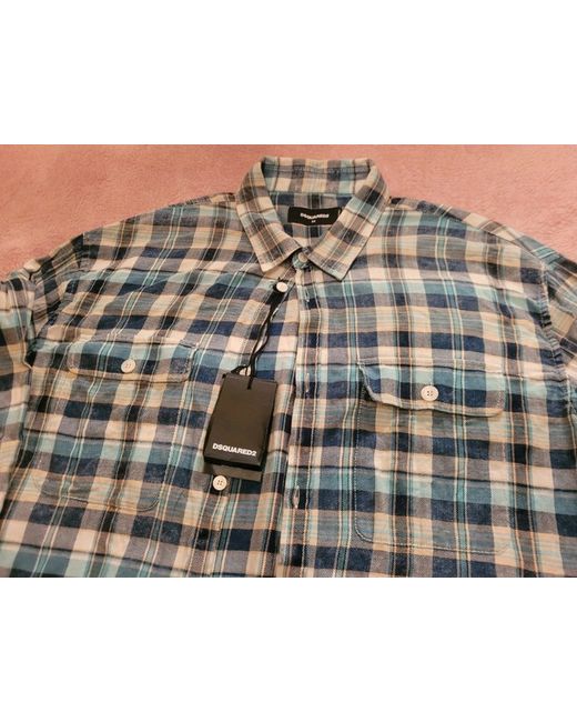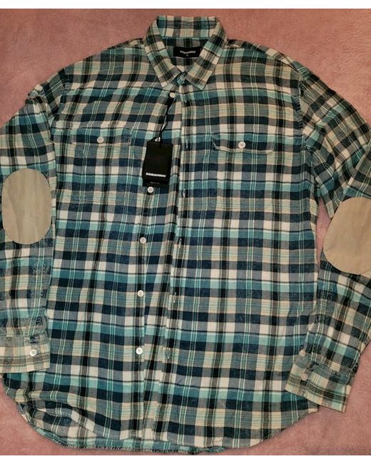 Dsquared elbow patch long sleeve aged checked cotton shirt with big buttons.