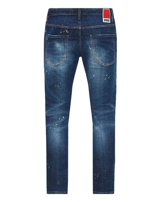 Enhance your denim collection with these Skater Jeans from Dsquared2. Constructed from 98% cotton and 2% elastane, they are designed with the common jean features including button closure to the waist and fly, belt loops and five pockets for a classic look. Decorated in a slid colouring throughout with minor distressed detailing and the iconic logo patch to the back for a show of brand loyalty. Slim fit so recommend sizing up.