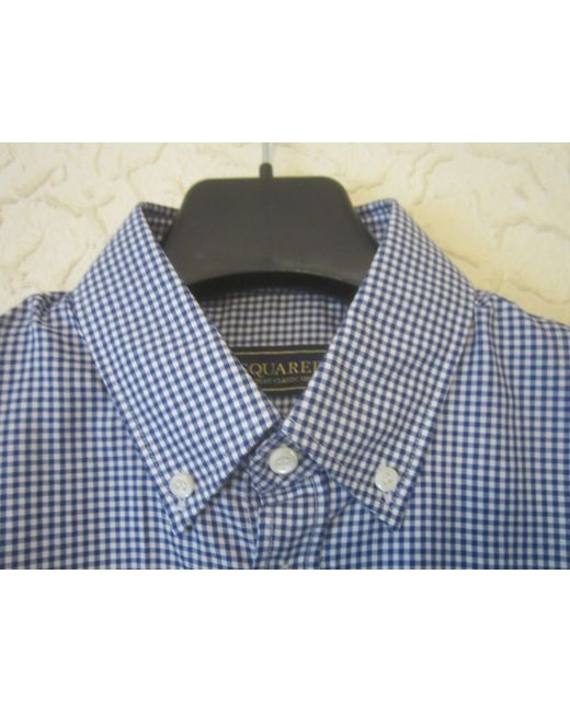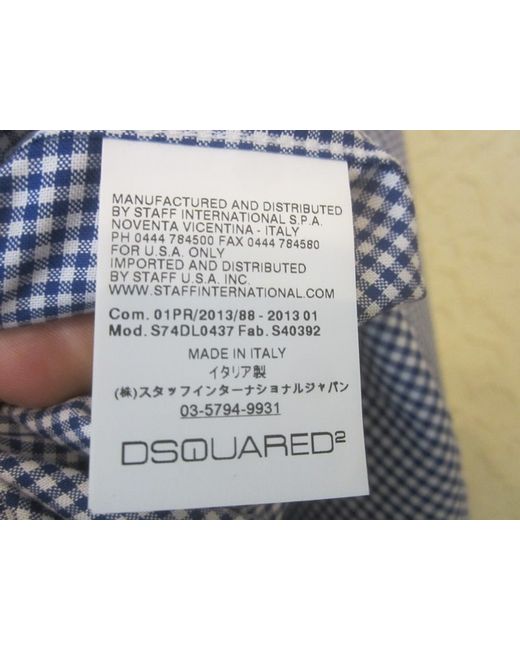 Dsquared2 shirt made of 100% Cotton. Gingham check cotton pattern in blue and white. Pleated detail at the back below yoke. Buttoned cuffs. Armpit to armpit seam to seam is 20.25"(51.4 cm).