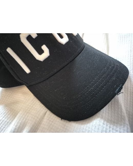 This Dsquared2 baseball cap in black is a stylish addition to any casual outfit. Made from comfortable cotton material, it features an adjustable strap for a perfect fit. The cap is adorned with an embroidered cargo design in black and white, with the Dsquared2 logo adding a touch of luxury. Perfect for men, this one-size cap is a versatile accessory for everyday wear.