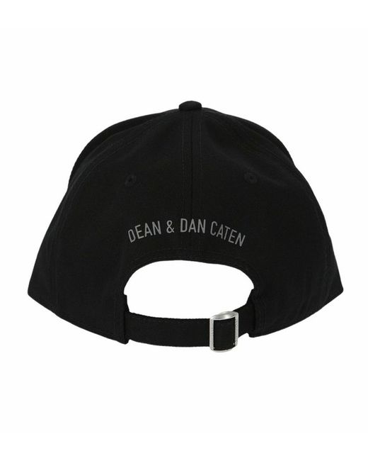 Step up your basics with this black reflective logo baseball cap, courtesy of Dsquared2. D2 logo on the front and back. Simple, but bold. Dsquared2 baseball cap Black Reflective logo Logo print to the front Dean & Dan Caten print onthe back Curved peak Adjustable Snapback 100% Cotton Presented with tags