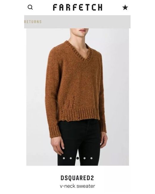 Brand new with tags Authentic designer Dsquared Wool Vneck Men Sweater It is very Warm, and Stylish, with ripped fabric on a side. Perfect for those Autumn/Winter days. Color - dark brown like on the photos I took. Pictures from Farfetch are just for styling and fitting guidance . Dispatched with Royal Mail 1st Class.