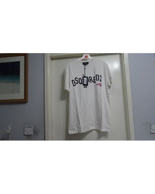 This style is crafted with a crew neckline and short sleeves. Update your off duty wardrobe with thisDSquared2 printed T shirt. Hand wash only.