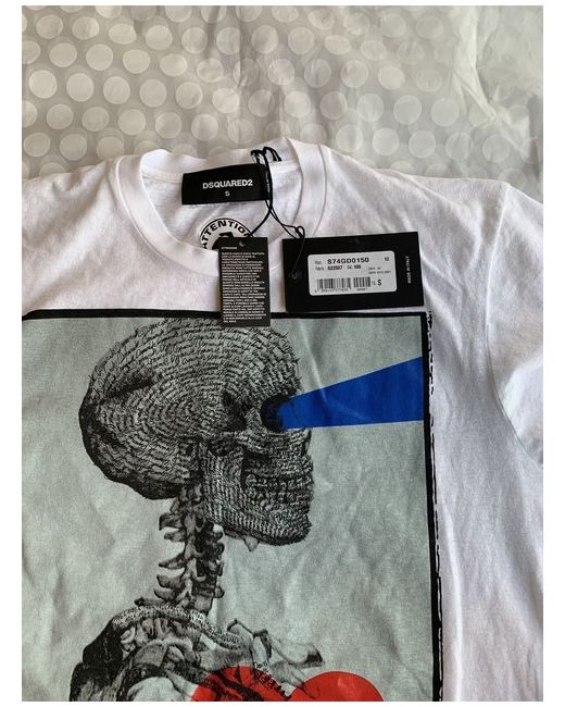 Women's White Daquared2 Authentic Skeleton T Shirt. S.