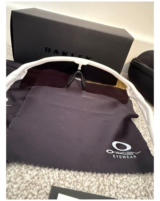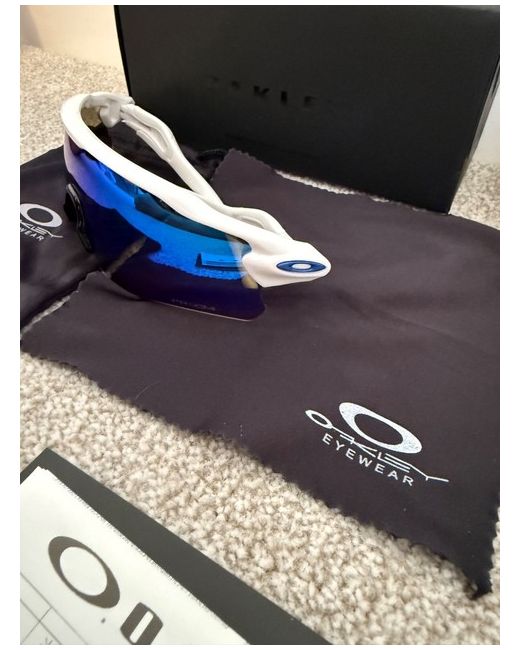 The Oakley Radar EV sunglasses in white and blue are a stylish and high-quality accessory for men. With a sleek white frame and blue lenses, these sunglasses provide both a fashionable look and protection from the sun. Oakley is a well-known brand known for their durable and reliable eyewear, making these sunglasses a great addition to any outfit or outdoor activity.
