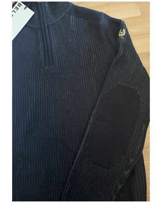 This Belstaff half zip jumper in size M is a stylish and practical choice for casual occasions. Made from wool and featuring a knit fabric type, it offers comfort and warmth, perfect for walking activities. The black colour and pullover style add a sleek touch to the overall look, while the Belstaff brand ensures quality and style.