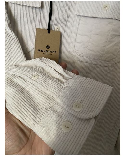 Elevate your casual wardrobe with this stylish Belstaff shirt in size small. The shirt features a trendy plaid pattern, a collared neckline, and a button closure for a classic look. Made of high-quality cotton corded fabric, this shirt is both comfortable and durable. The ivory colour of this shirt adds a touch of sophistication to your outfit, while the regular fit ensures a flattering silhouette. With a chest pocket and button-up design, this shirt is perfect for any casual occasion. Add this Belstaff shirt to your collection today and step out in style. Retail price £225