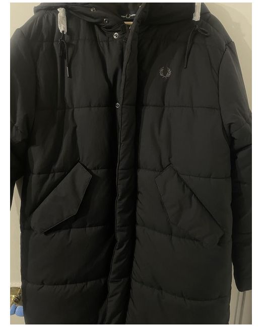 For sale a Fred Perry Quilted Parka in Size Medium Black The label does say medium but this is a very oversized coat it’s more like a baggy fitting XL or a nice fitting XXL The coat fits me and I’m a XXL in Fred Perry M3600 polo shirts and I’m 5ft9 to give you an idea of how big the coat is Style Number J4589 Coat is brand new with tags also from a smoke and pet free home