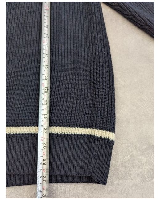 Sweater Jumper Striped Trim Retro V-Neck Large