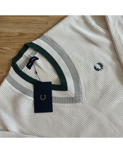 This Fred Perry jumper is a must-have for any stylish man. With its classic striped design and V-neckline, it is perfect for any casual occasion. Made from high-quality materials, this pullover is both comfortable and durable. Available in size 2XL, this jumper is suitable for men of all sizes. The white colour makes it easy to pair with any outfit. Perfect for those who love a timeless and classic look.