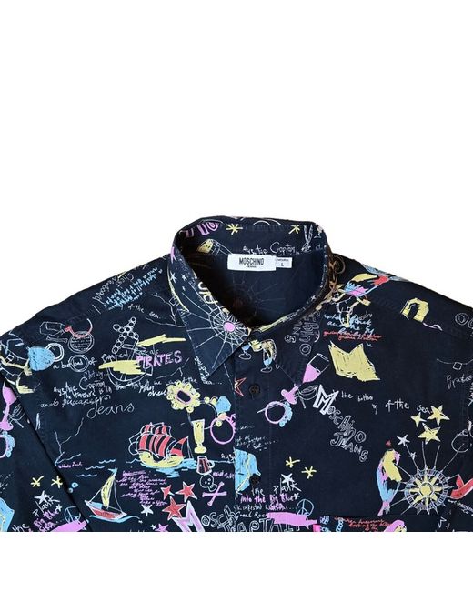 This men's Moschino shirt features a collared neckline. It is a stylish and versatile piece of clothing that can be worn for various casual occasions. Made by the renowned brand Moschino, this shirt is sure to add a touch of sophistication to your wardrobe.