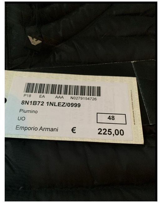 Emporio Armani Down Jacket Lightweight Packable Black Size S Small BNWT. EU size 48 which I believe is a small but I have included measurements. If you would like anymore please don’t hesitate to ask. Lightweight Down Puffer Full Zip Two Zips to front Collar Fitted Cuffs & Hem Waist Pockets with zips Branded Zip Pull Packable Material : polyamide Lining : polyamide Padding : 90% white duck down 10% white duck feather Dispatched with Royal Mail tracked 48.