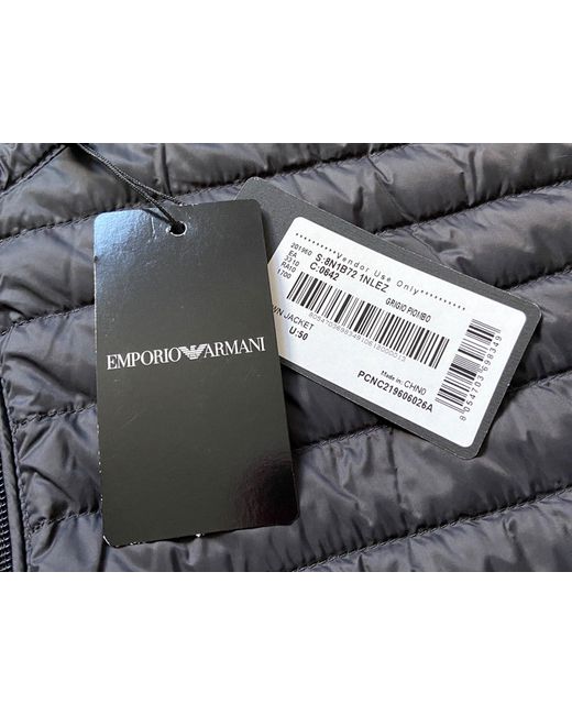 Ultra Lightweight But Warm Quilted Down & Feather Filled Jacket From Emporio Armani. 100% Polyamide Shell With 90% White Duck Down & 10% White Duck Feather Filling. Charcoal Grey In Colour. Two Way Zip Fastening With Logo Zip Pull.